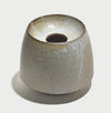 The pebble glaze is a beautiful grayish-blue for most of the surface, lighter blue where there are drips and a darker brown color on the rim, where the glaze is the thinnest.